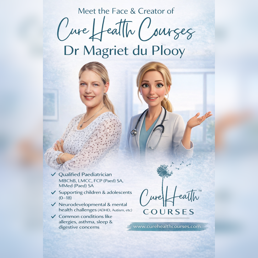 Throughout my career, I’ve seen how closely nutrition, gut health, and brain development are linked — and how strongly they can influence a child’s behaviour, focus, mood, and emotional regulation. CureHealth Courses was created to give parents clear, evidence-informed, and practical guidance they can confidently use in everyday life, translating clinical insight into realistic strategies without overwhelm.